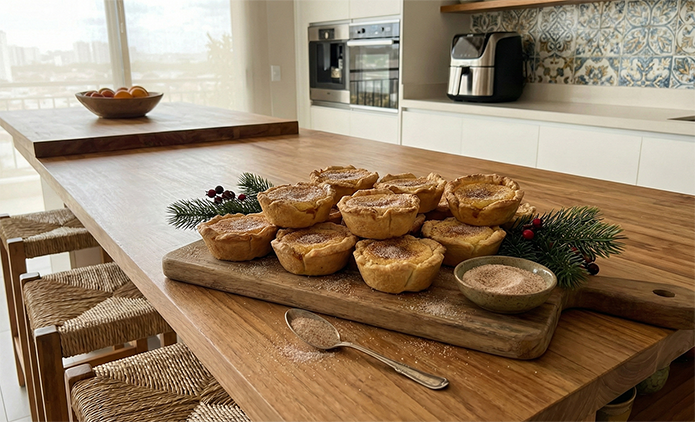 - Polvilhe a mistura de açúcar e canela sobre cada queijada